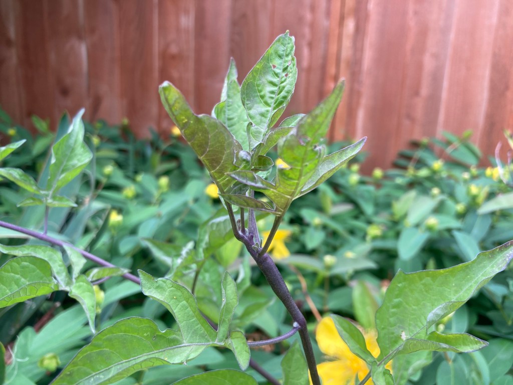I spoke earlier of the Nightshade- Now there are two- the variety I described above, which has begun sprouting amethyst bells in hanging clusters as it pulls forth from the foliage of St. John’s Wort below, and another growing in a large bushy spread inside the greenhouse, stretching admirably out of hard packed dirt. I’ve been watering it, talking to it, asking it to stay and grow and collaborate. Small flowers are blossoming; soon there shall be berries.