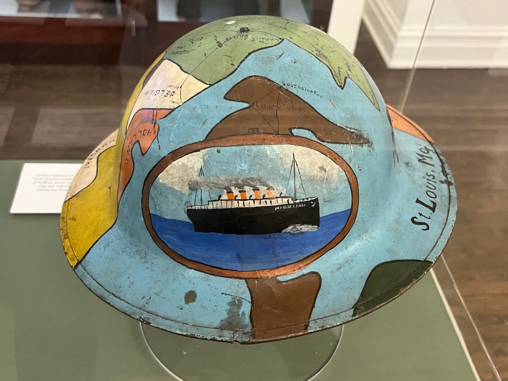 Jefferson Barracks is now home to a handful of small museums, including the Powder Magazine Museum which features somber and respectful displays on each of the wars and conflicts in which the barracks played a role. A nice surprise on this particular day was a temporary exhibit in another building: Art At War, an impressive collection of wartime artworks and documents that included vernacular works by soldiers in the field, propaganda posters (“Every garden a munitions factory!” boasted one familiar design), and battlefield sketches from across the ages. This thoughtfully-curated show (curator seemingly unlisted- I’ve searched the web for an hour and haven’t found a name) is at turns funny and heart-rending. A valuable experience for anyone (including those of us who hate war), it is viewable through the end of this year in the Old Ordnance Room, a short drive from the park entrance. (Jefferson Barracks Park and National Cemetery, 345 North Rd W, St. Louis, MO 63125.)